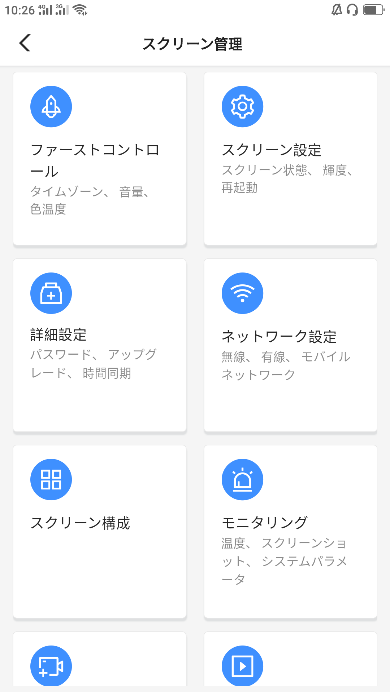 手順 3 スクリーン名の後ろにある「接続」をクリックします。 手順 4 「admin」ユーザーのパスワードを入力し、「ログイン」をクリックします。 ログイン完了後、が表示され、ViPlex Handyではアカウント情報を自動保存します。 手順 5 スクリーン名をクリックして、「スクリーン管理」画面に入ります。 手順 6 「遠隔管理 > VNNOX Standard/AD」を選択します。 図2-7 VNNOX配置 手順 7 認証情報の入力。サーバーを選択したら、認証ユーザー名と認証パスワードを入力し、「次へ」をタップします。 認証情報は5.1.1.2.1 プレイヤー認証情報の表示に表示されるのと一致しなければなりません。 手順 8 プレイヤーの作成。プレイヤー名を入力し、「バインド完了」をタップします。 |