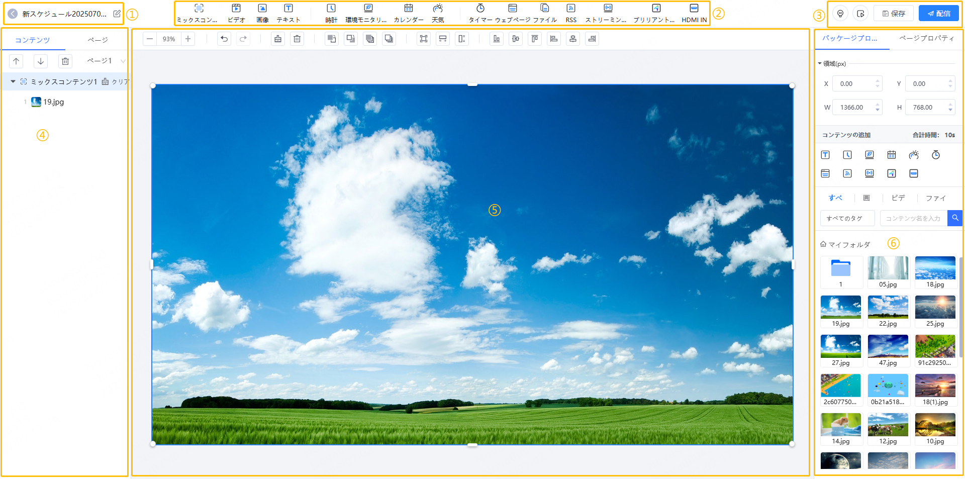 | 5 | ページコンテンツの編集 | ページのスケーリングやコンテンツの削除、コンテンツの階層・レイアウトの調整に使われ、ロット操作に対応します。空白部分をダブルクリックしてテキストコンポーネントを追加できます。 また、他のページのコンテンツ(プロパティ含む)をコピーして、現在ページに貼り付けることができます。 |
