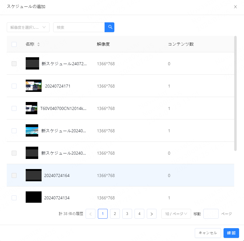 手顺 5 スケジュールリストからスケジュールを一つか複数選択し、「確認」をクリックします。