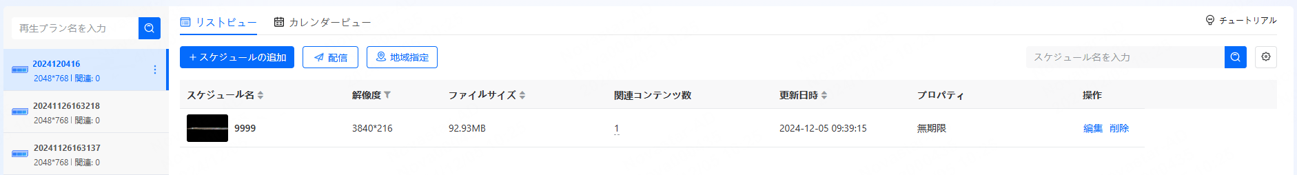 - 再生プランリストでは、再生プラン情報の編集や再生プランの削除ができます。