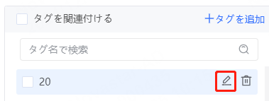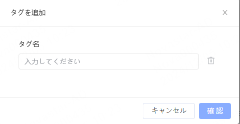 • タグを追加:「+タグを追加」をクリックし、「タグを追加」ウィンドウにおいて、必要なタグ名を入力後に「確認」をクリックしてタグ追加が完了します。タグを一括追加したい場合は、リターンキーを押しっぱなしにして行を新規作成できます。