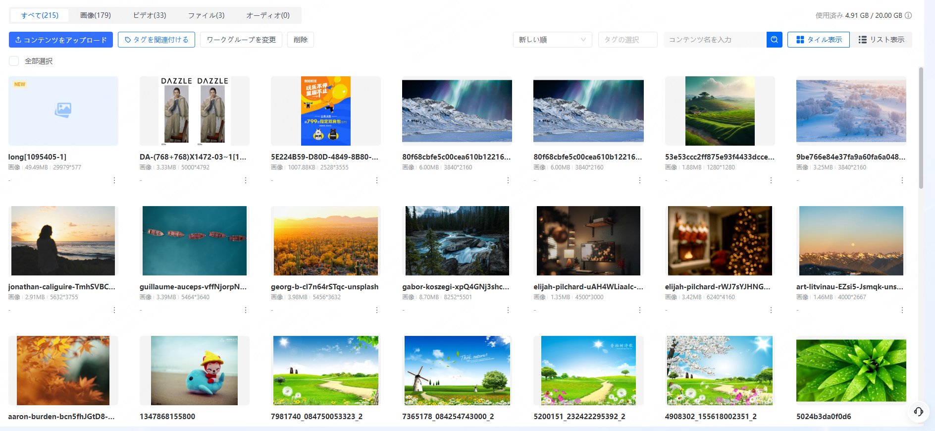 - タグの追加:コンテンツライブラリリストで対象コンテンツにチェックを付け、「タグの追加」をクリックし、追加したいタグを選択して「OK」をクリックします。